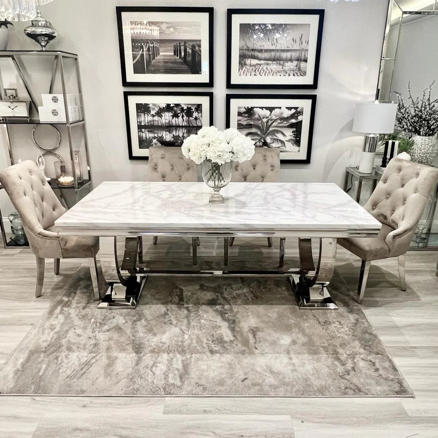 Add a touch of modern glamour to your dining space with the Ariana Chrome Dining Table Range. This stunning collection combines sleek contemporary design with luxurious finishes, creating the perfect center piece for stylish homes. Available in a variety of sizes and finishes, the Ariana range easily accommodates everything from intimate dinners to grand gatherings. Pair it with upholstered or velvet dining chairs to complete the chic, modern aesthetic.