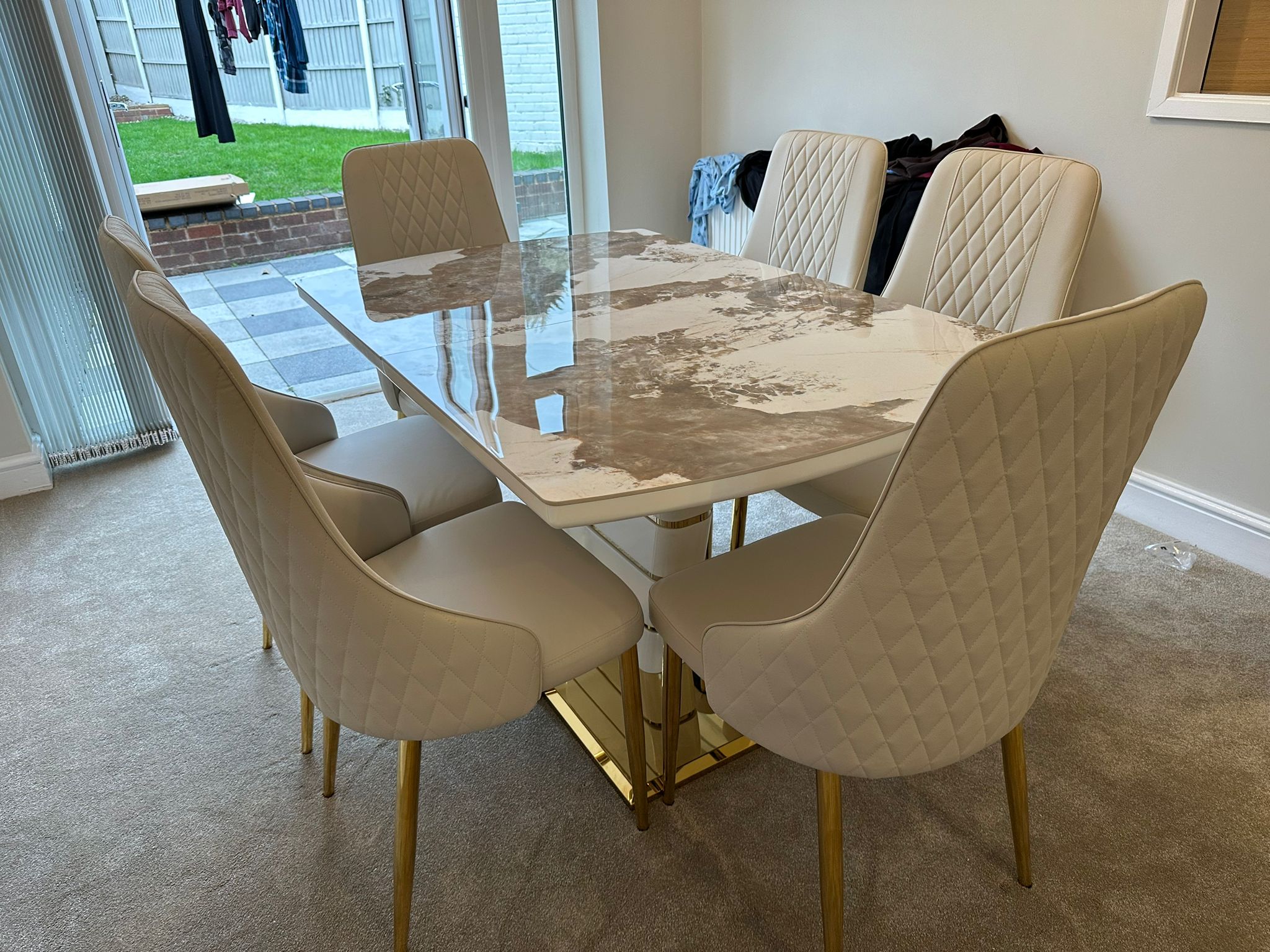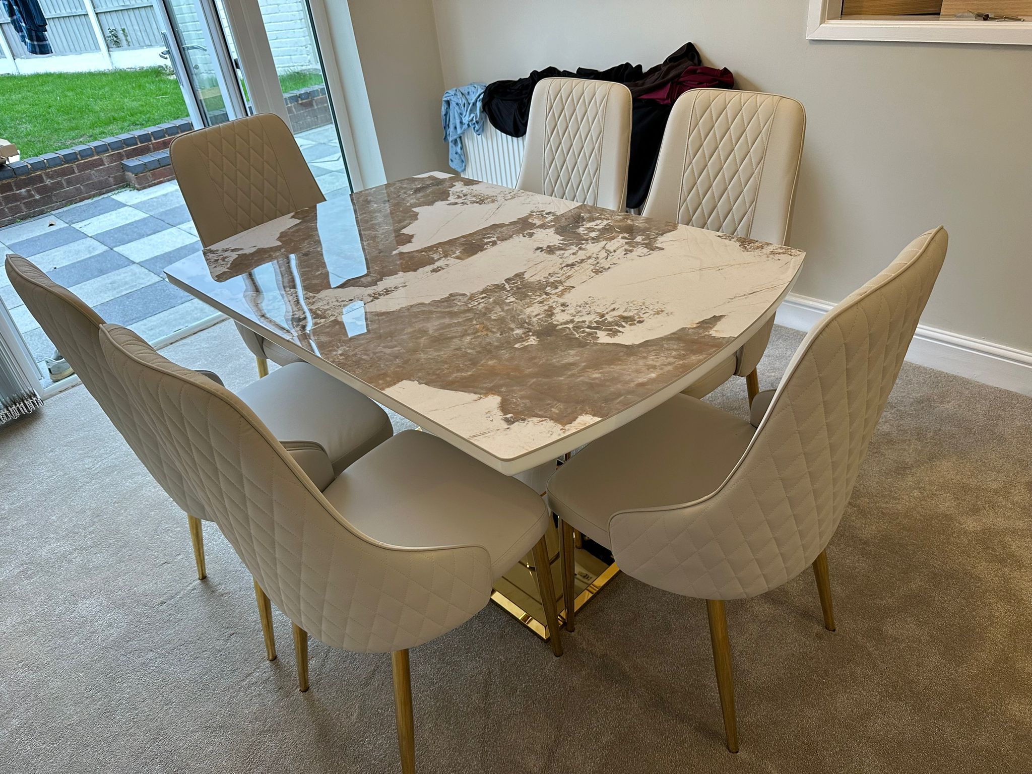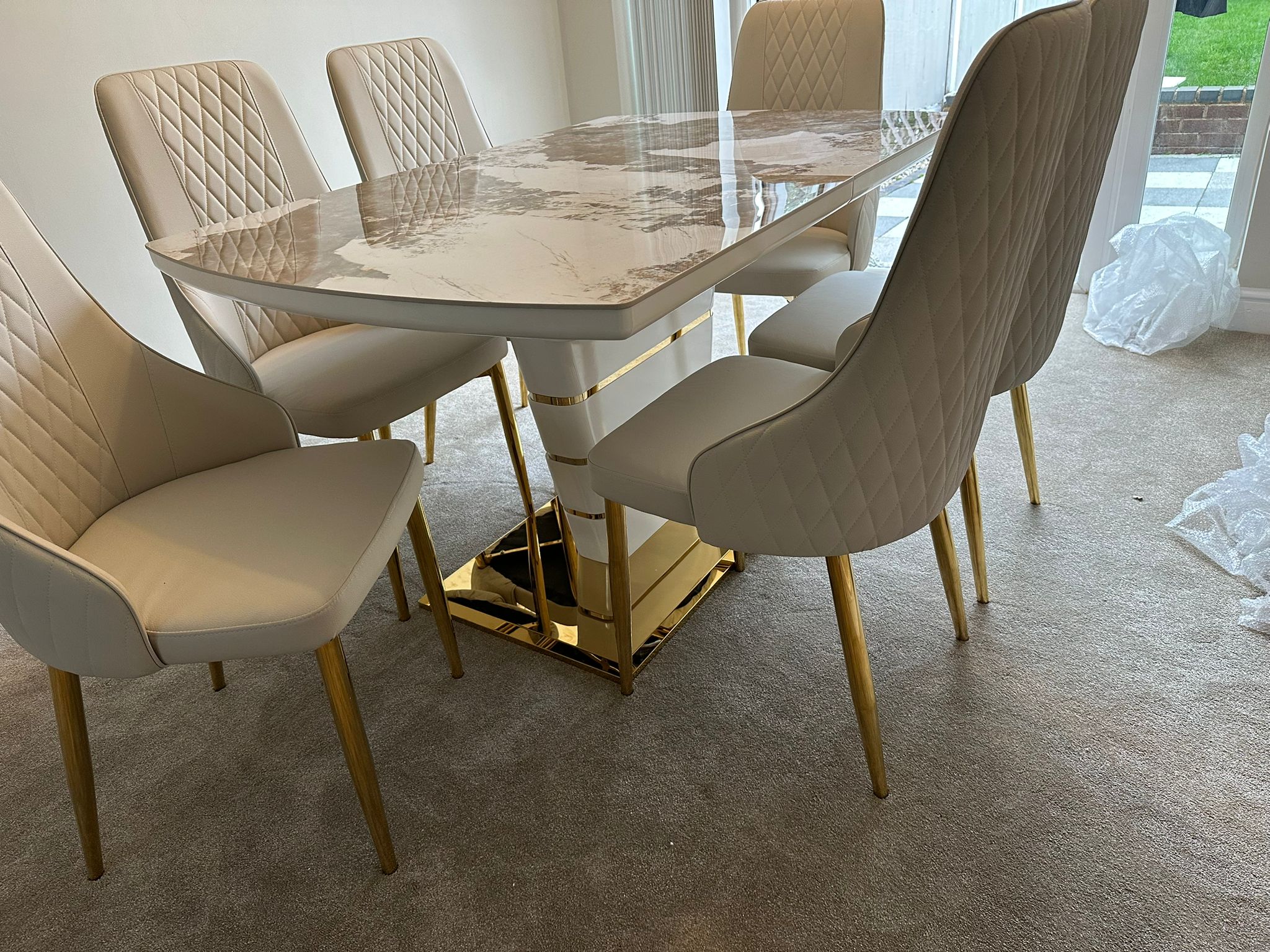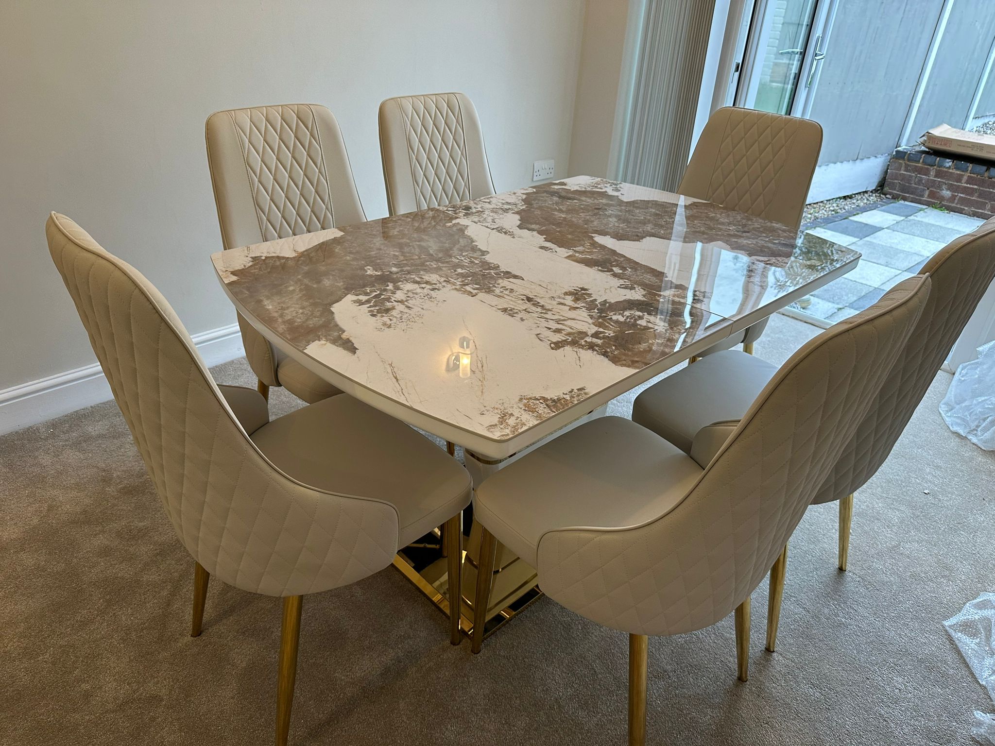 Redefine your dining experience with the Camden Pandora Extendable Sintered Stone Dining Table, paired effortlessly with our bold and modern Cream Lambo Chairs. This set combines high-end design with practical functionality, making it a perfect centerpiece for contemporary living. Whether you're enjoying everyday meals or entertaining guests, the Camden Extendable Dining Set brings together innovation, elegance, and comfort in one timeless design.