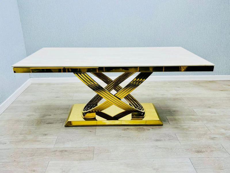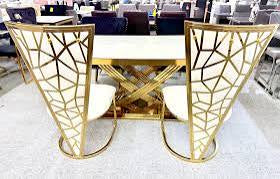 Elevate your dining space with the timeless elegance of the Cream Gold Elina Table paired with Cream Gold Vienna Chairs. Designed to blend luxury with comfort, this exquisite set features a beautifully finished Elina table in a soft cream tone accented with refined gold detailing, creating a warm and sophisticated centerpiece for any dining area.