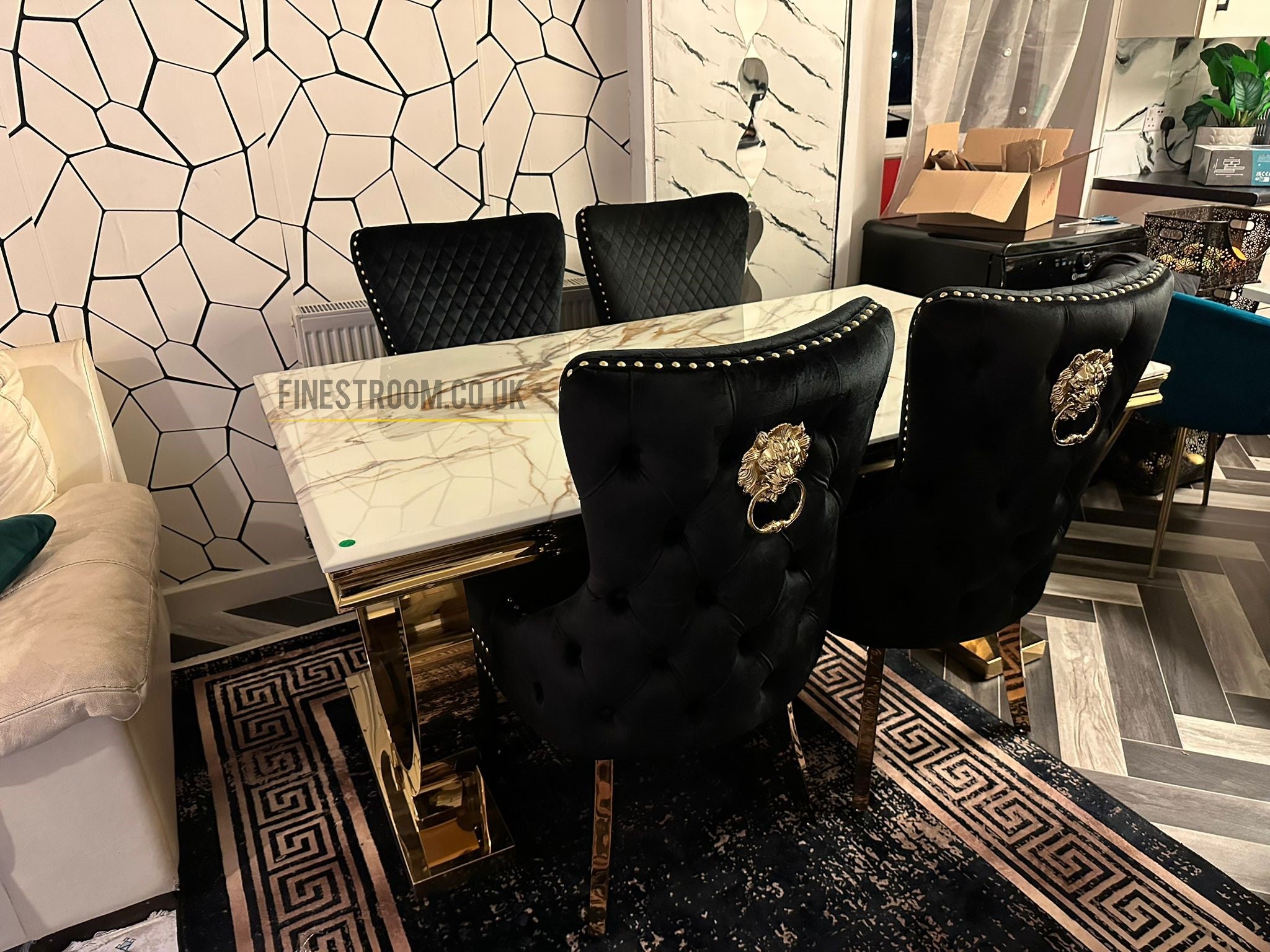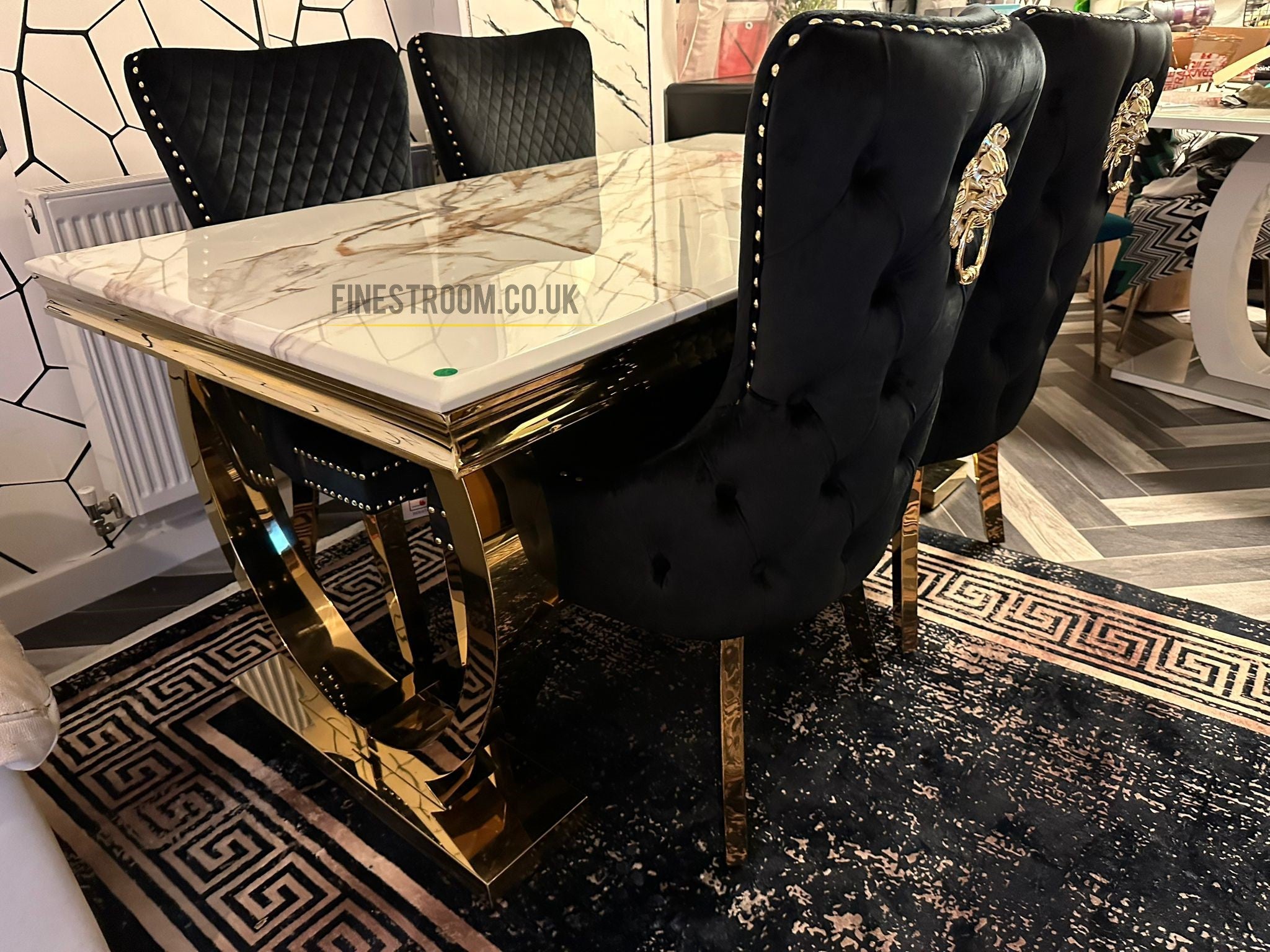 Bring luxury and modern elegance into your dining space with the Kata Gold Ariana Dining Table, beautifully paired with the striking Victoria Black Gold LK Chairs. This stunning set blends contemporary design with glamorous detailing, creating a show-stopping centerpiece for any home.